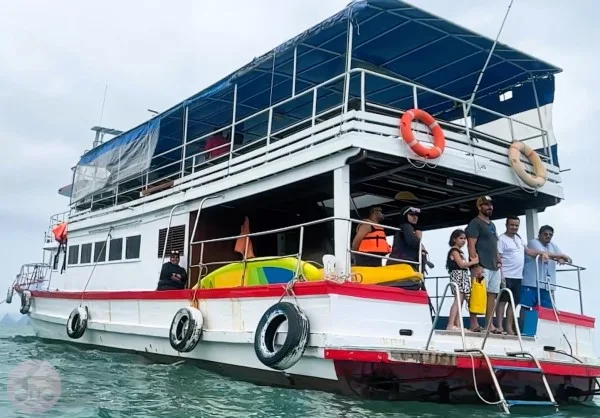 There are more trees and some swings both on the beach and in the water to enjoy and get some pictures as you like. This side is a bit rocky and not fit for swimming. Still a good place to sit by the sea and watch other tourists riding some jet skis. After about an hour on the beach you will get on your big boat, bid Phang Nga bay a sweet good bye to return to Phuket. On your return journey you will be offered some drinks and snacks.